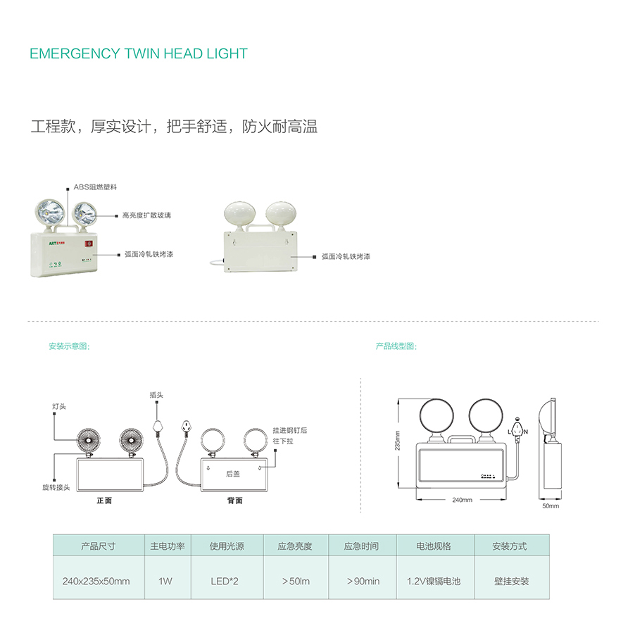 應(yīng)急事件:≥90分鐘應(yīng)急光效:≥50LM